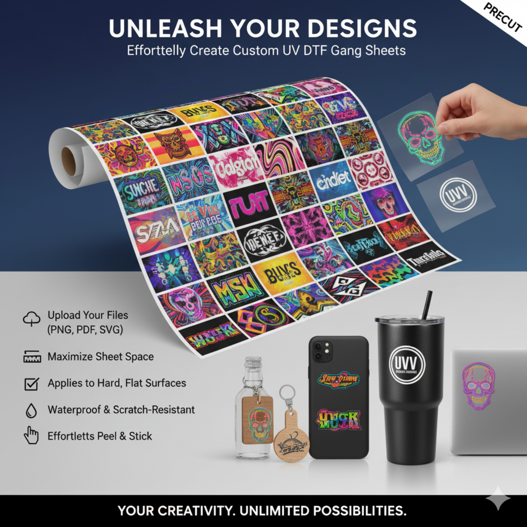 • Flexible Options – Order by size or upload your own gang sheet.